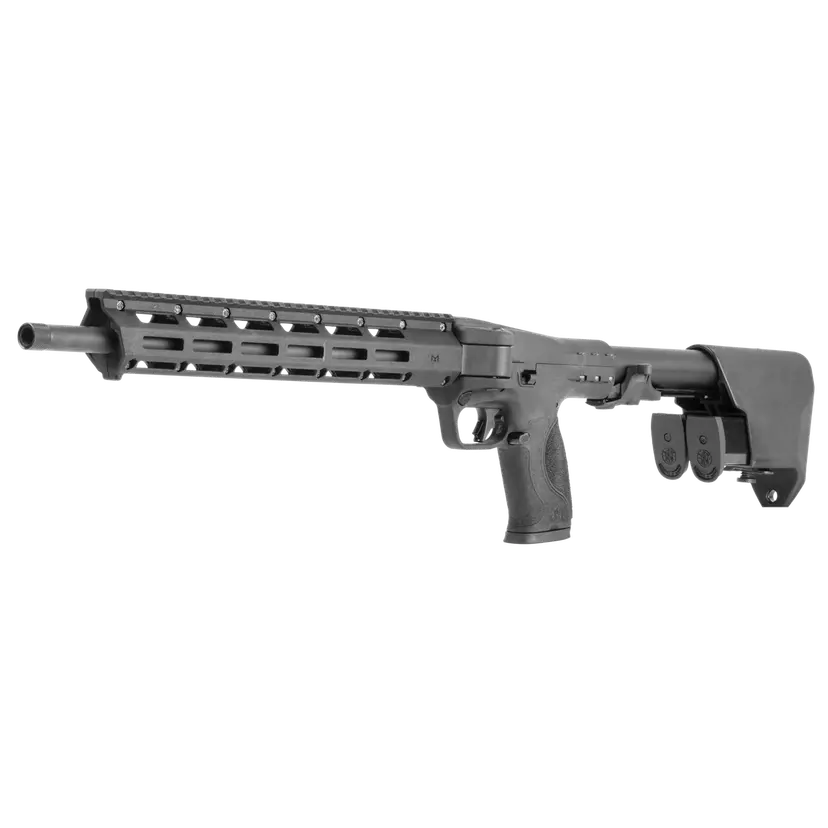 Smith & Wesson M and P FPC for sale features a slim and compact design that allows it to be stowed away and accessible when needed. Inspired by our M&P handguns, the M&P FPC has a familiar grip and trigger, is compatible with our 10MM S&W magazines, has the ability to store additional magazines with its in-stock storage, and features M-LOK® slots in the forend to mount accessories.