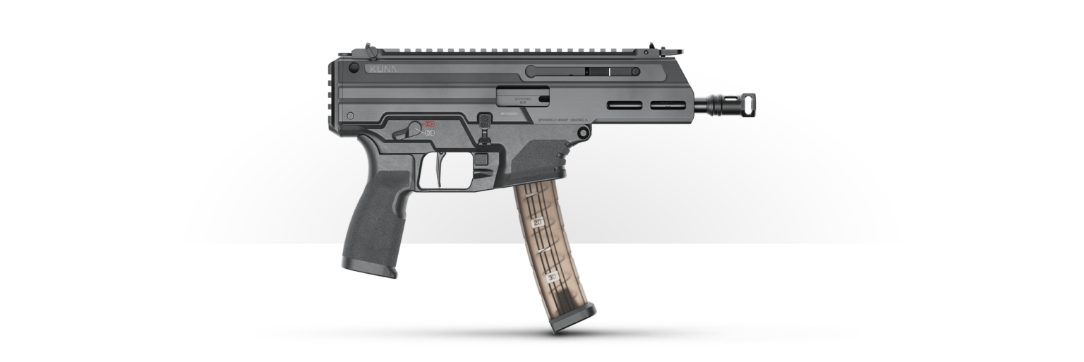 Designed to deliver exceptional shooting stability in a portable package, the Springfield Armory KUNA 9mm For Sale houses a roller-delay operating system that dramatically reduces felt recoil and enhances control. Chambered in 9mm, it features a 6” threaded barrel with a muzzle brake, hybrid flip-up sights, and a 30-round translucent magazine with metal feed lips for reliable operation. Fully ambidextrous controls ensure seamless engagement for any shooter, while the non-reciprocating charging handle keeps handling smooth and unobstructed. The integrated Picatinny rail end plate allows easy attachment of stabilizing braces for added support.
